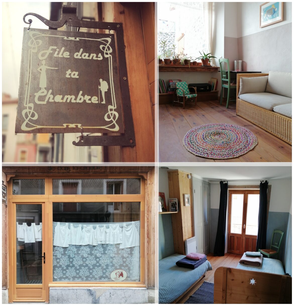 Cet hébergement peut accueillir jusqu’ 8 personnes. Cette maison de bourg est composée de 3 chambres, sur 3 étages, chacune disposant d’une salle de bain et toilette privative. Au rez de chaussée, se situe la pièce principale avec cuisine équipée et grande table pour les repas partagés.